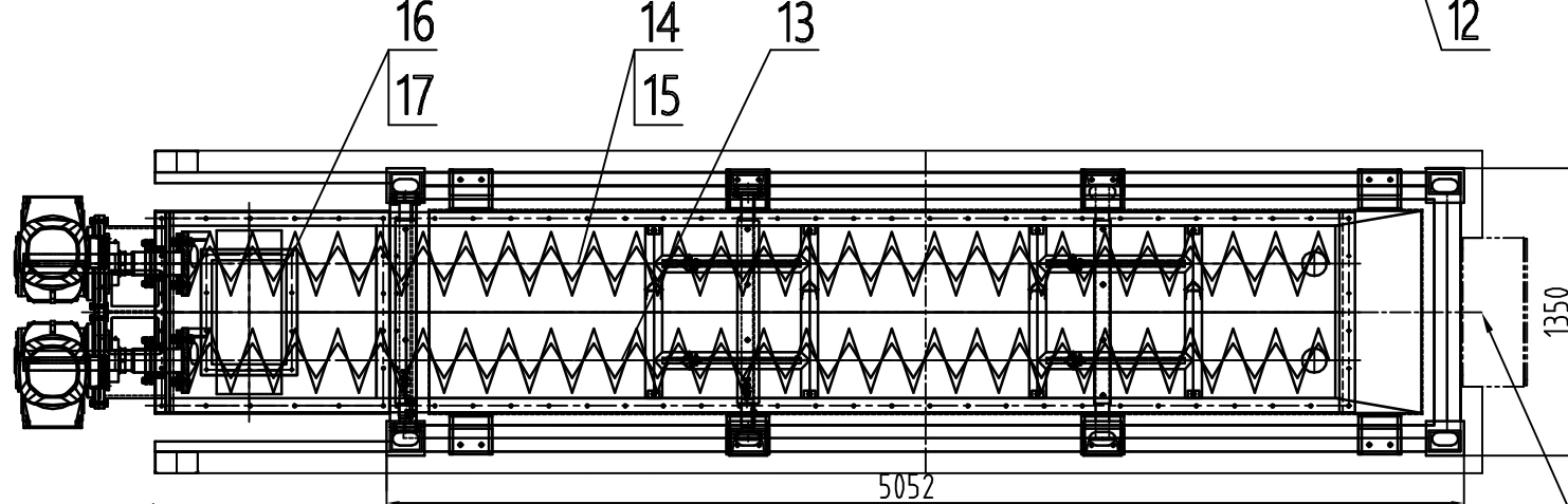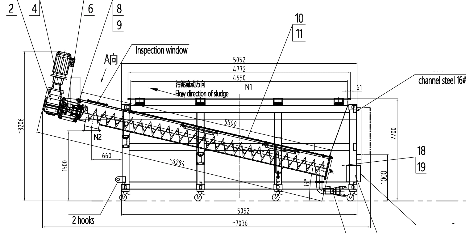 Этот двухвальный безвальный винтовой конвейер используется для транспортировки осадка сточных вод в рамках государственного проекта.